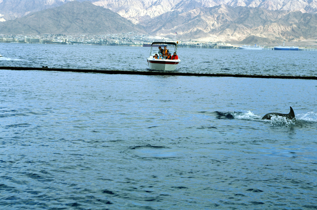 Эйлат похож на все другие курортные города. В первый день на одном из пляжей к нам подошел спортивного вида молодой человек и предложил прокатиться на моторке. "Дельфины гарантированы", - приговаривал он. Потом, на Дельфиньем рифе, мы поняли что он не врал:)))