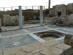 Недалеко от ипподрома на самом берегу моря сохранились остатки главного дворца Кейсарии. Возможно, это был дворец царя Ирода, но то, что сохранилось на этом месте - это более поздний дворец, не исключено что в нем жил Понтий Пилат. В настоящее время западная (нижняя) часть дворца оказалась под водой. Сверху еще можно увидеть бассейн с мозаичным полом, микву и бани. Как следует из объяснительной надписи нижняя часть дворца была для частного использования, а верхняя - для общественного. На территории парка найдено доказательство существования Понтия Пилата – камень с его именем.